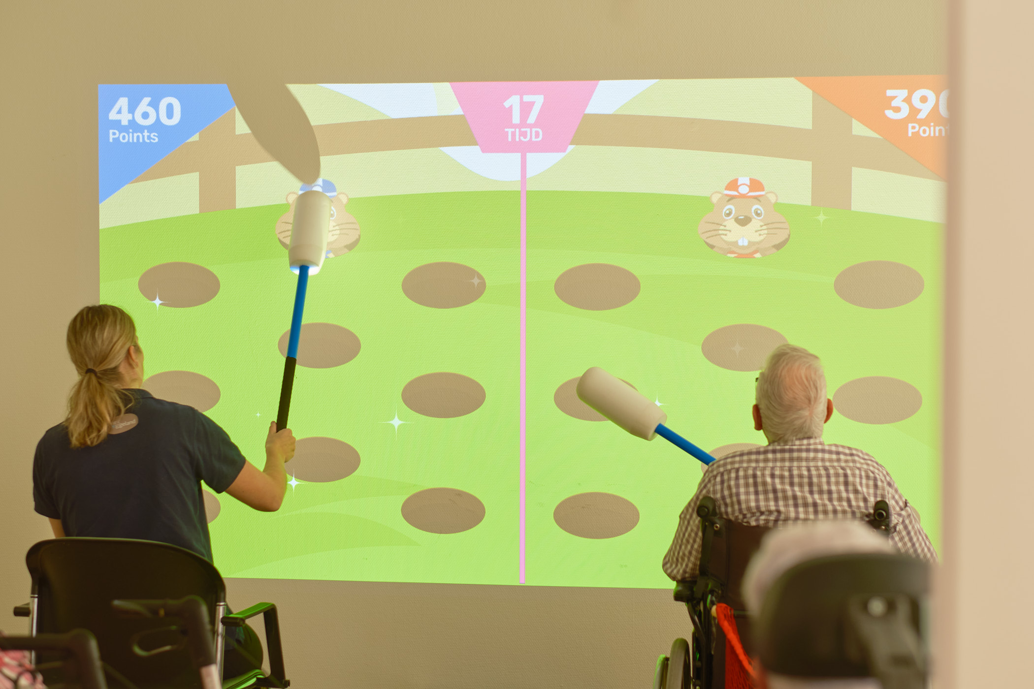 Apeldoorn'daki Groot Schuylenburg yatılı bakım parkı ‘s Heeren Loo'nun müşterileri X-Wall'u kullanarak eğlenceli bir şekilde egzersiz yapabiliyor. Müşteriler çoğunlukla nesnelere dokunulması gereken oyunları oynuyorlar. Ekstra bir meydan okuma için eğitici oyunları da kullanmayı seviyorlar.